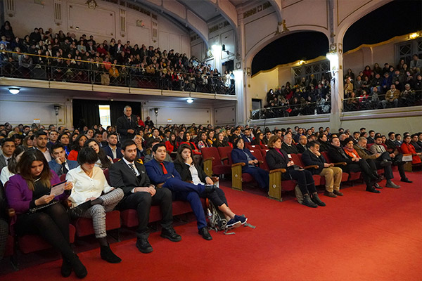 Fue una ceremonia masiva llena de emoción y buen ambiente la que se vivió en el Aula Magna de la Universidad de Santiago, donde se destacó el avance de nuestras carreras, la calidad y la pasión de nuestros estudiantes frente a los desafíos actuales, y el compromiso constante del cuerpo académico por actualizar los contenidos y reforzar el espíritu y lineamientos de nuestra Universidad.